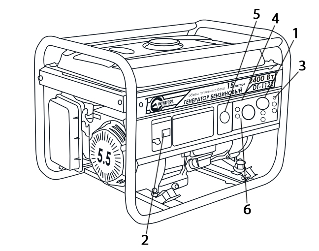 Характеристики Генератор бензиновый Intertool 2.2 кВт, 5.5 л.с., 4-х тактный (DT-1122)
