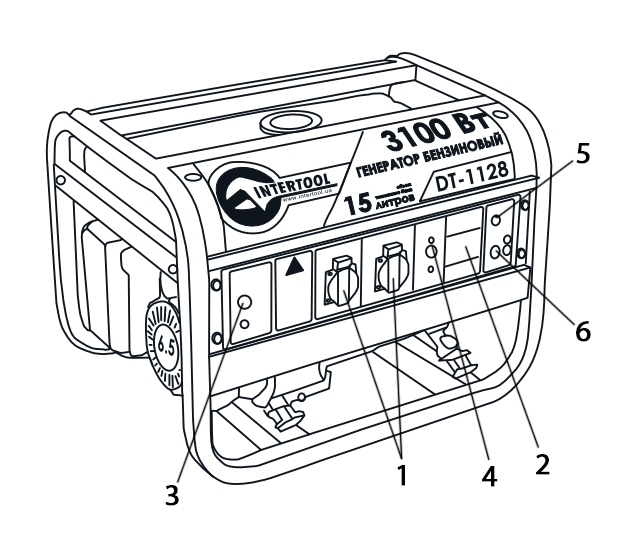 Характеристики Генератор бензиновый Intertool 2.8 кВт, 6.5 л.с., 4-х тактный (DT-1128)