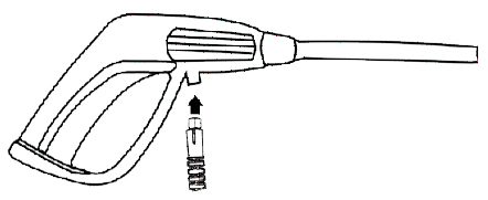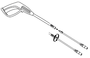 1) Присоедините шланг высокого давления к рукоятке. Используйте ключ, чтобы надежно зафиксировать шланг к пистолету.