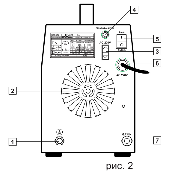 1. Байонетный разъем подсоединения сварочного кабеля «+»;